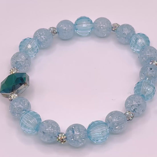 A gentle flow of frosted blues and sparkling silver create a delicate, whimsical, and perfectly serene for this bracelet.