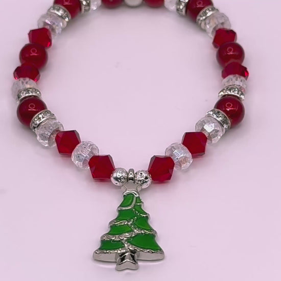 A sophisticated nod to Christmas tradition, this bracelet combines rich ruby hues, radiant crystal shimmer, and a striking green tree charm. It’s the perfect accessory for gifting, or keeping- to celebrate the beauty of the season.