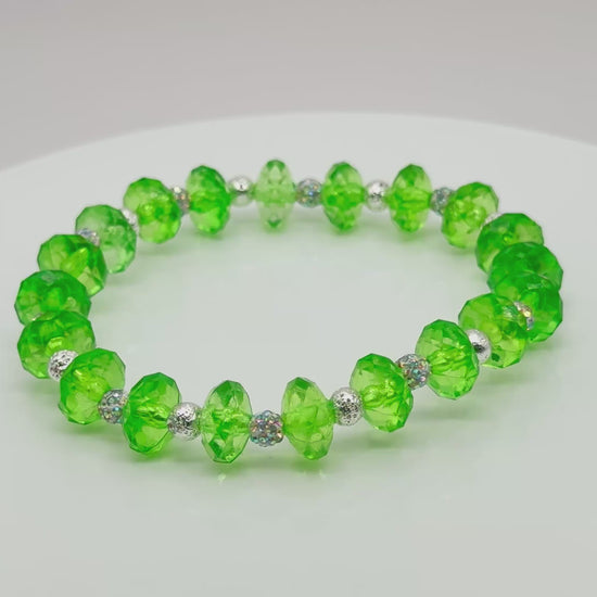 A sophisticated nod to the season’s most iconic color, this stretch bracelet shines in brilliant green tones reminiscent of fresh pine and holiday garlands.