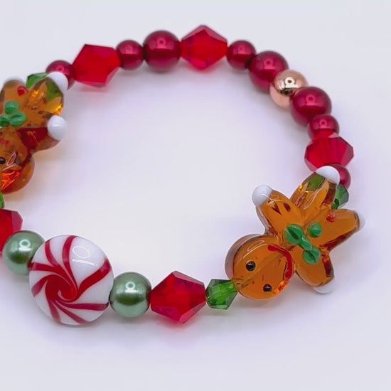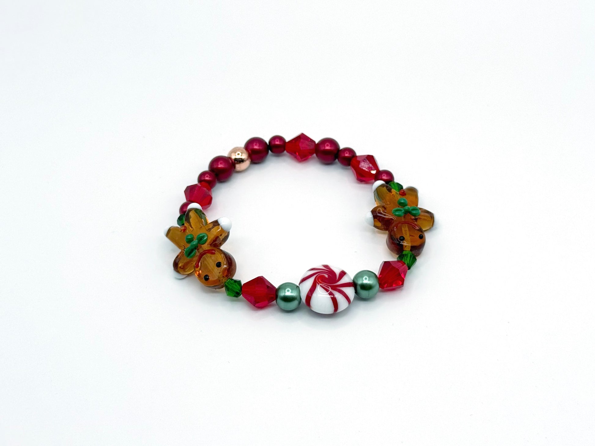 Double the cheer with two gingerbread pals surrounded by festive beads and candy accents. Whether you’re baking cookies or wrapping gifts, this bracelet adds a dash of fun to every holiday moment.
