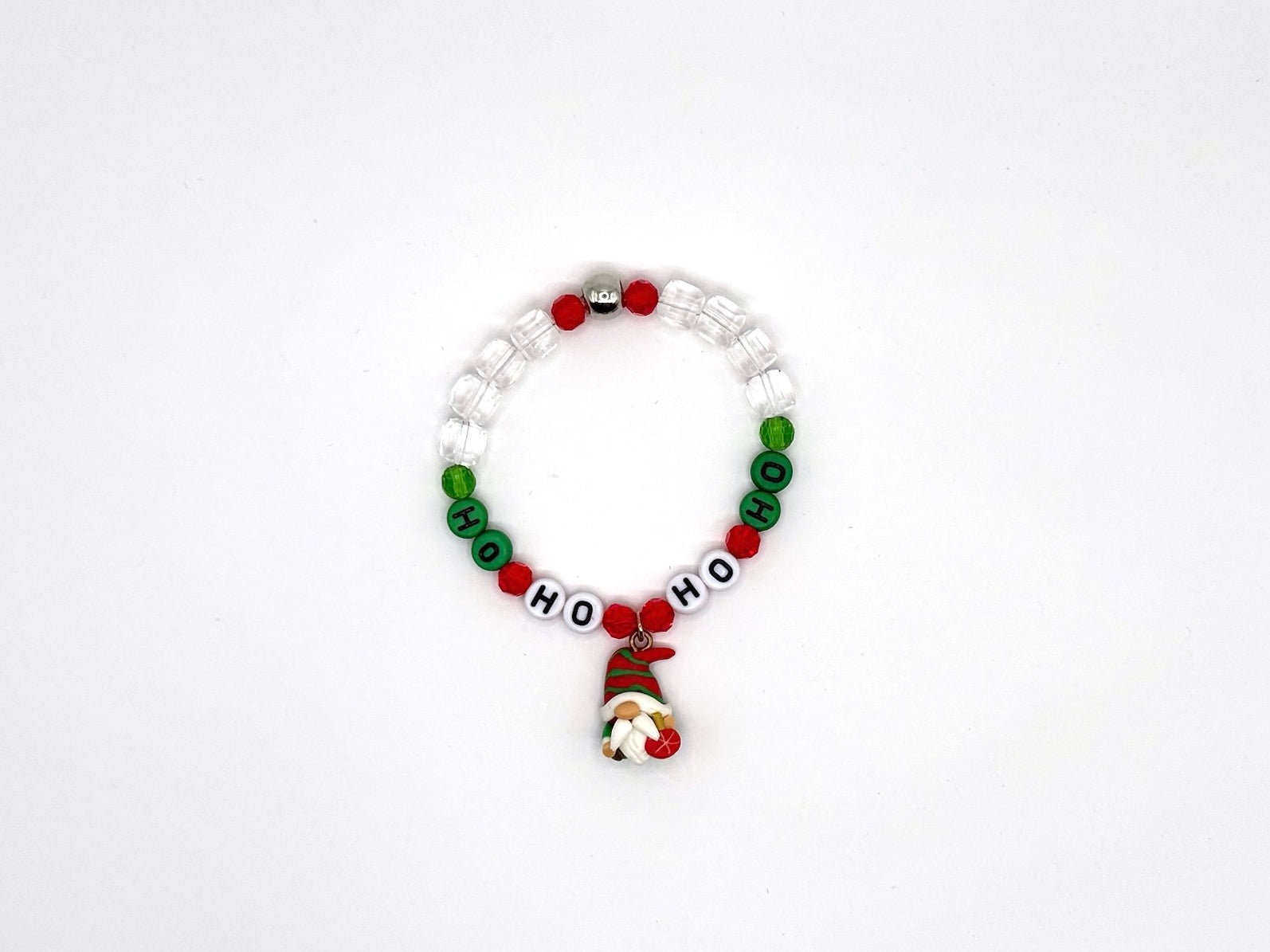 Whimsical and bright, this bracelet combines the joy of Santa’s “Ho Ho Ho” with the charm of a Christmas gnome for a merry holiday touch.