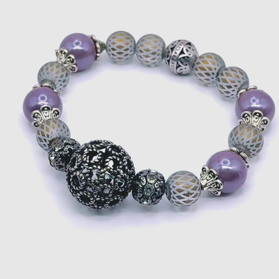 Intricate filigree meets soft purple pearlescent hues for a look that’s graceful, airy, and luminous.