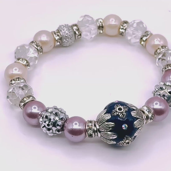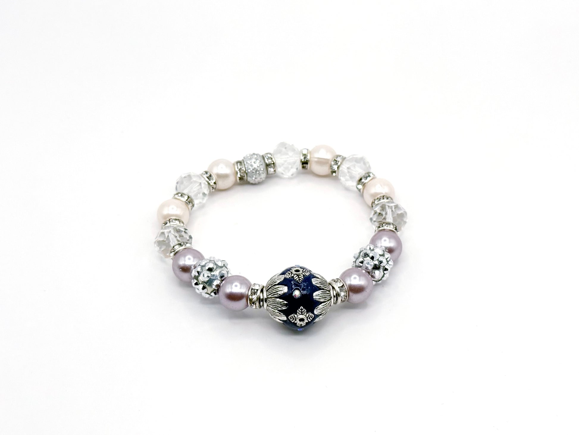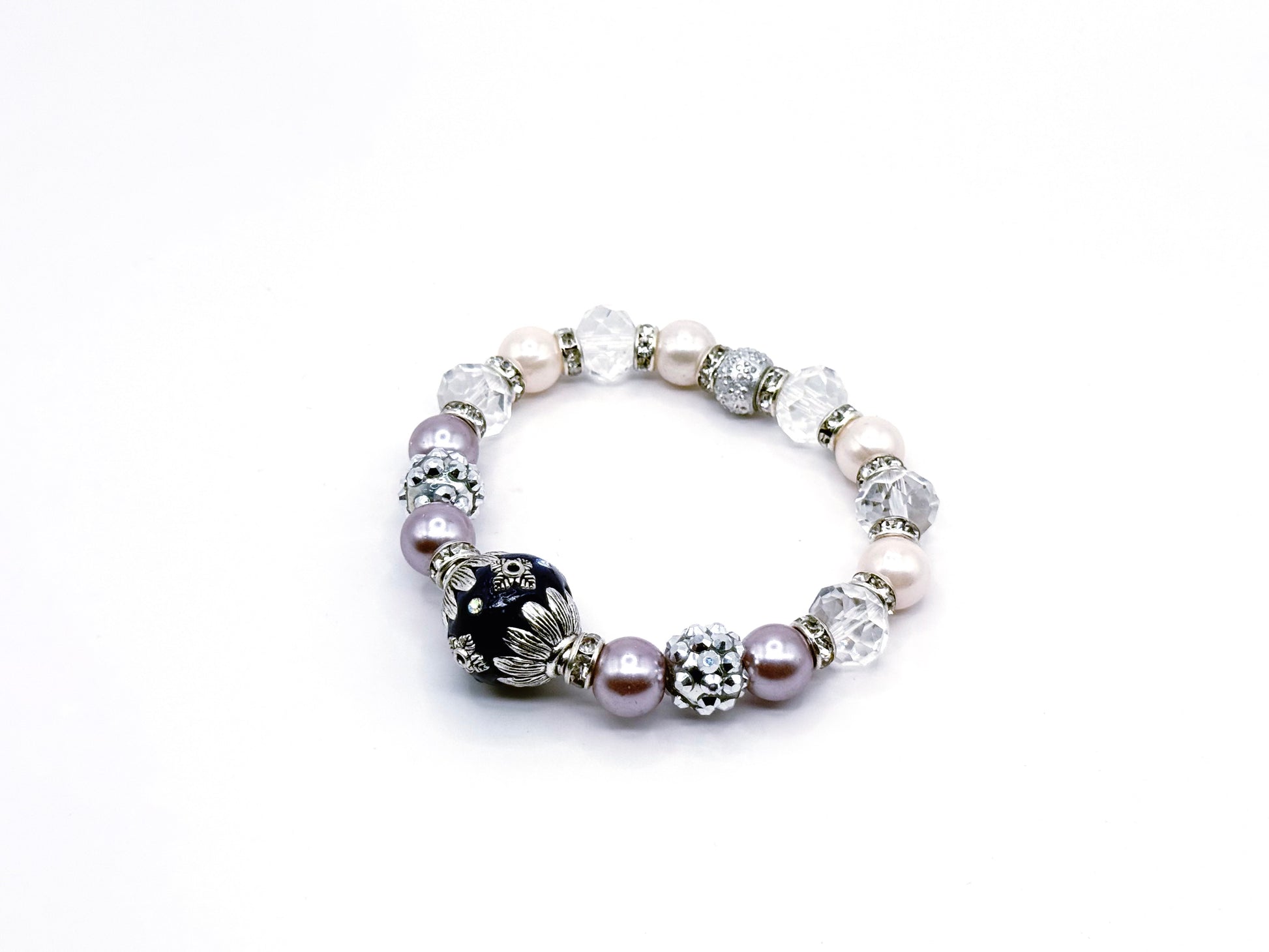Elegant, serene, and luminous, this bracelet captures the soft glow of moonlight on glass with a silver floral accent that adds a whisper of romance.