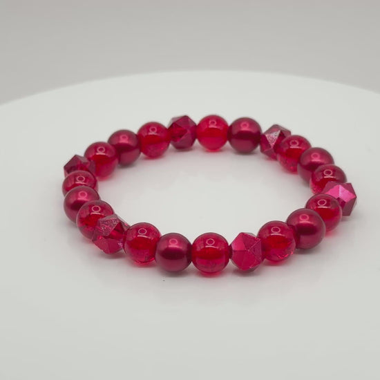 Bright red beads shimmer and shine in this festive stretch bracelet, inspired by everyone’s favorite reindeer! Simple, sparkly, and full of Christmas cheer.