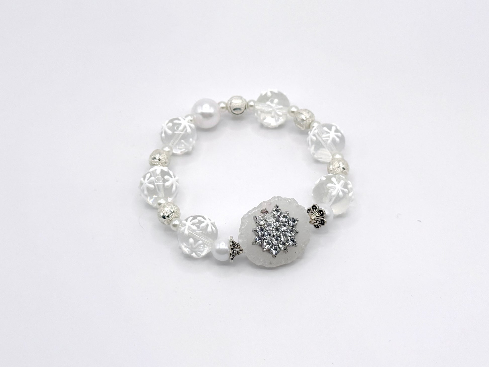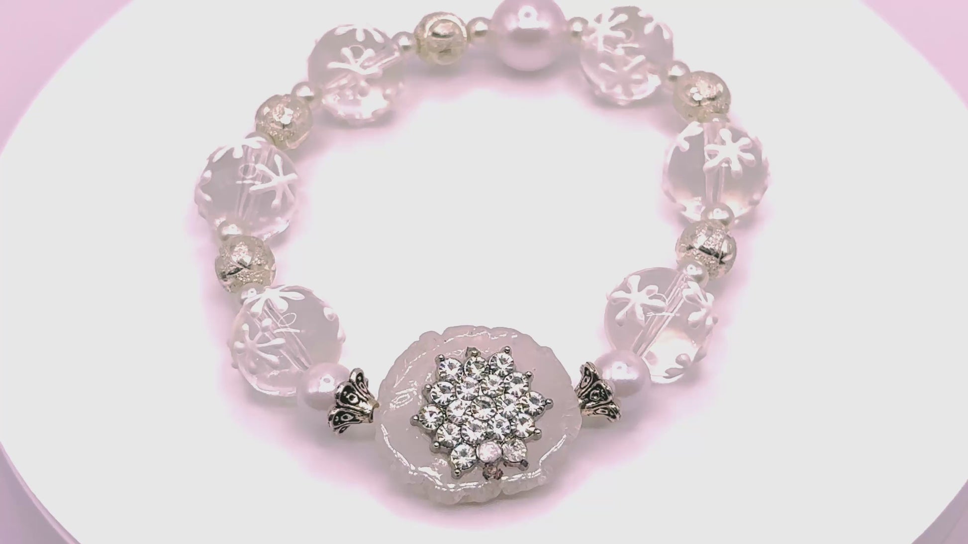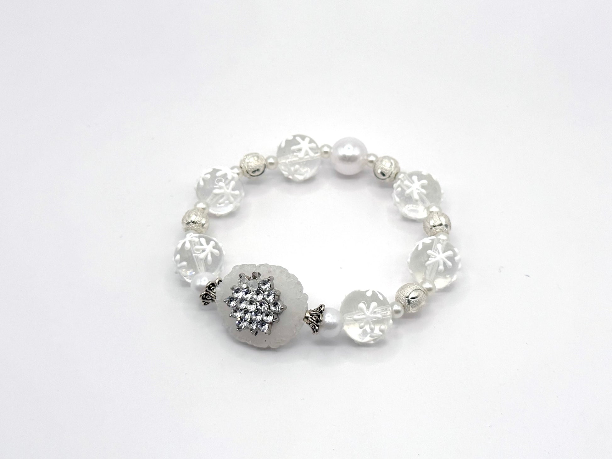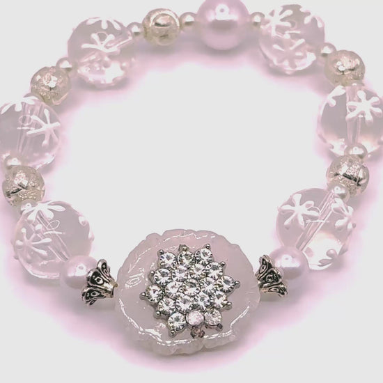 Timeless, chic, and full of sparkle, this bracelet embodies the beauty of a classic holiday dream. The crystal centerpiece and delicate snowflake beads make it both festive and sophisticated.