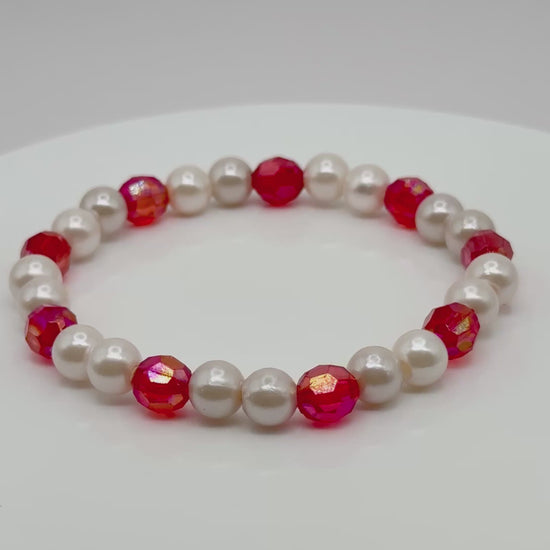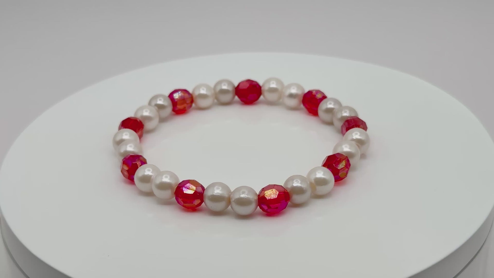 Soft pearls and radiant red beads shine like stars over a snowy Christmas night — elegant and festive in every way.