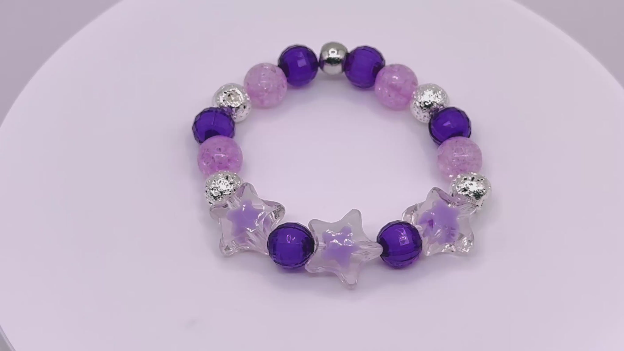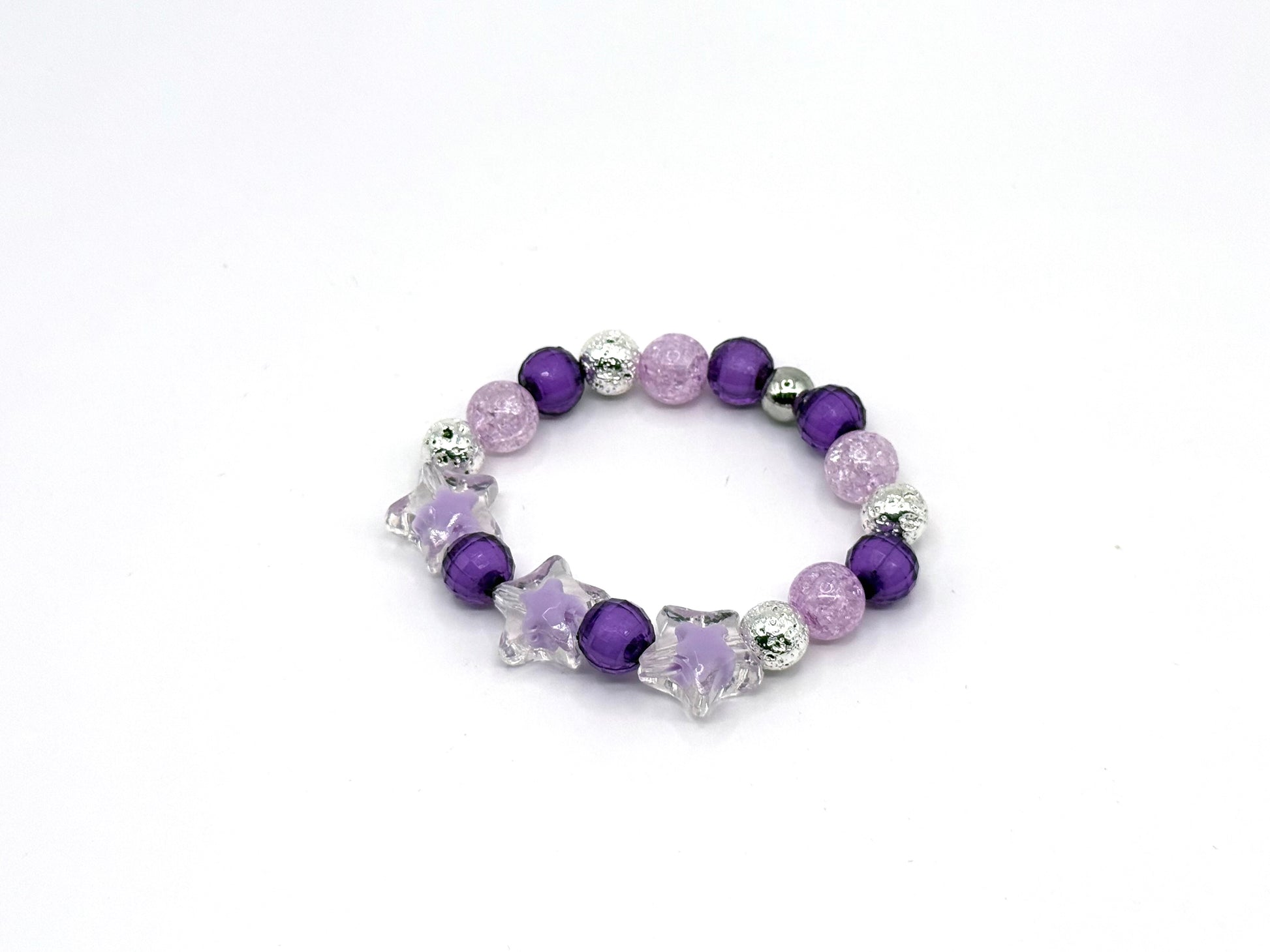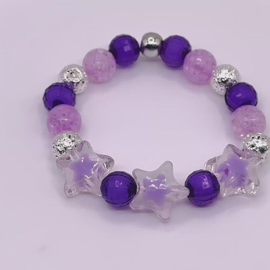 Glittering purple and soft lavender tones create a candy-colored constellation in this bracelet that’s pure fun.