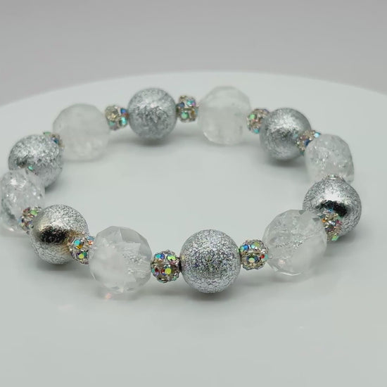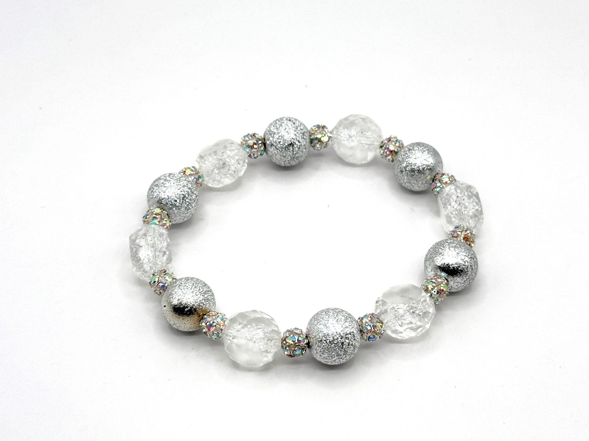 Soft silver shimmer and frosty sparkle come together to reflect the glow of a peaceful winter’s night in this stretch bracelet.