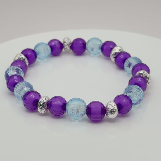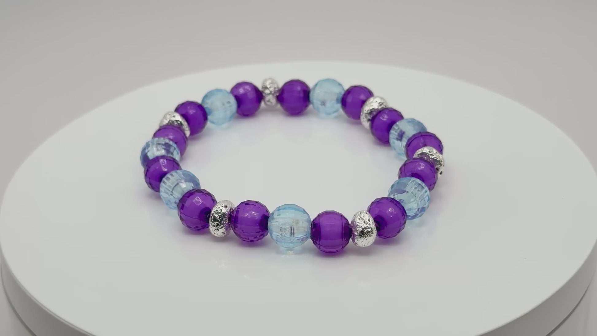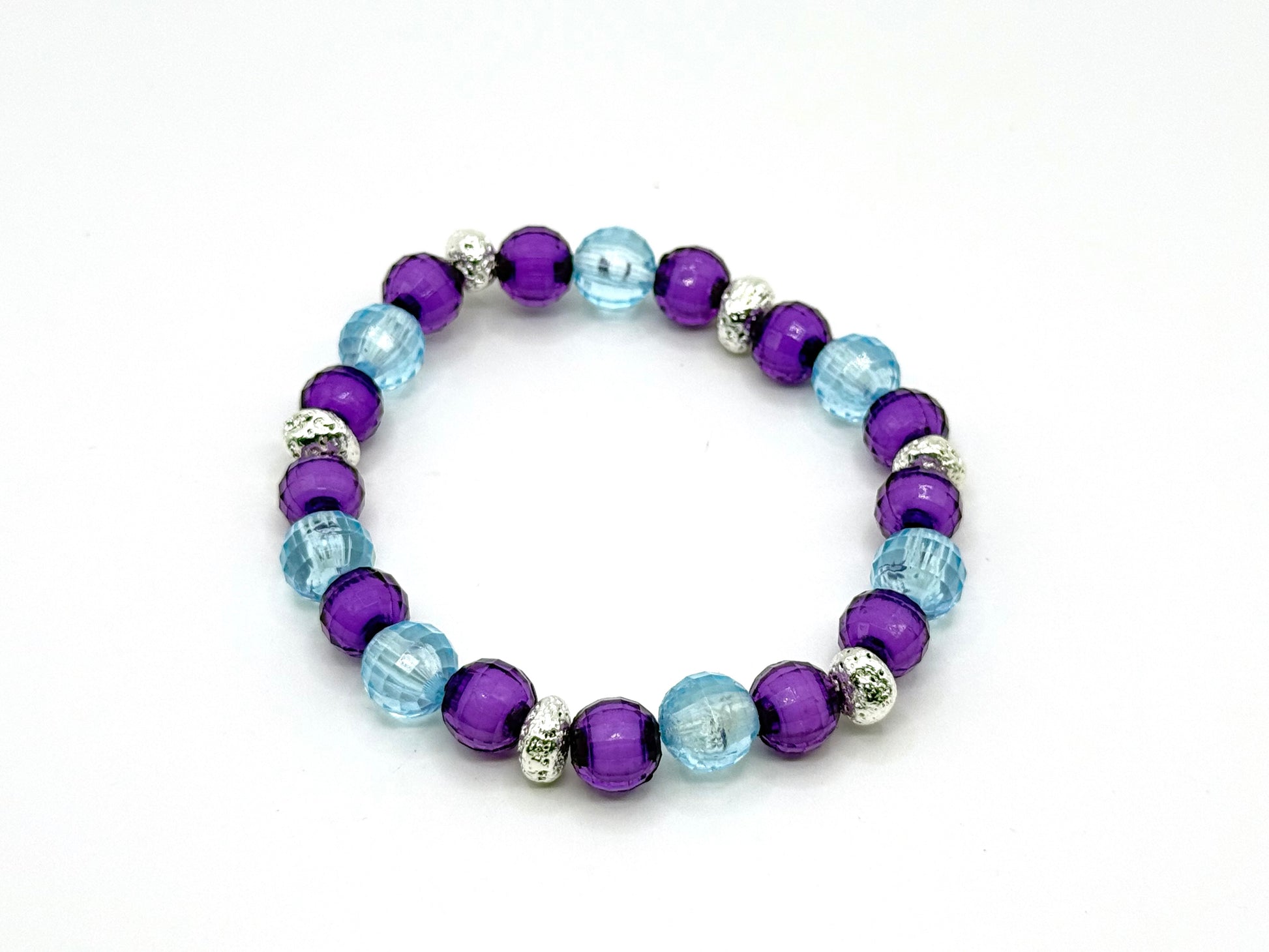 Sparkling with celestial tones of purple, silver, and icy blue, this stretch bracelet captures the quiet magic of a starry December night.