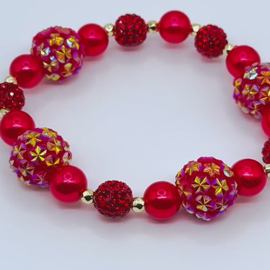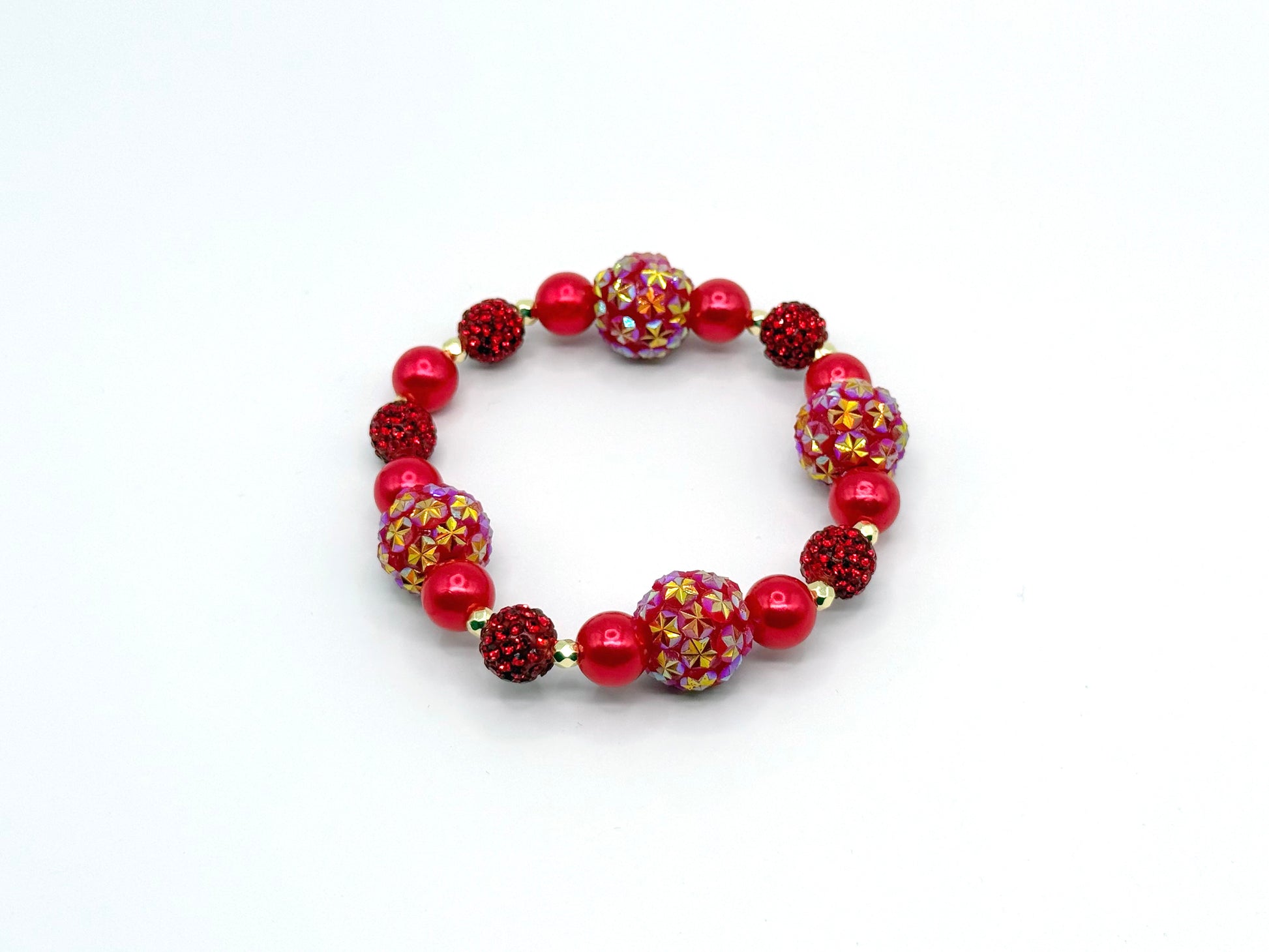 Make every moment shine with this radiant bracelet of glittering reds and golden accents. The perfect finishing touch for holiday soirées, gift exchanges, or dressing up your everyday cheer.